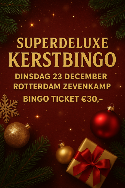 Deze Superdeluxe kerstbingo in Zevenkamp is extra speciaal! We beginnen al om 19:00 uur en dompelen je onder in een fantastische kerstsfeer. Bereid je voor op een avond vol verrassingen en onvergetelijke momenten.